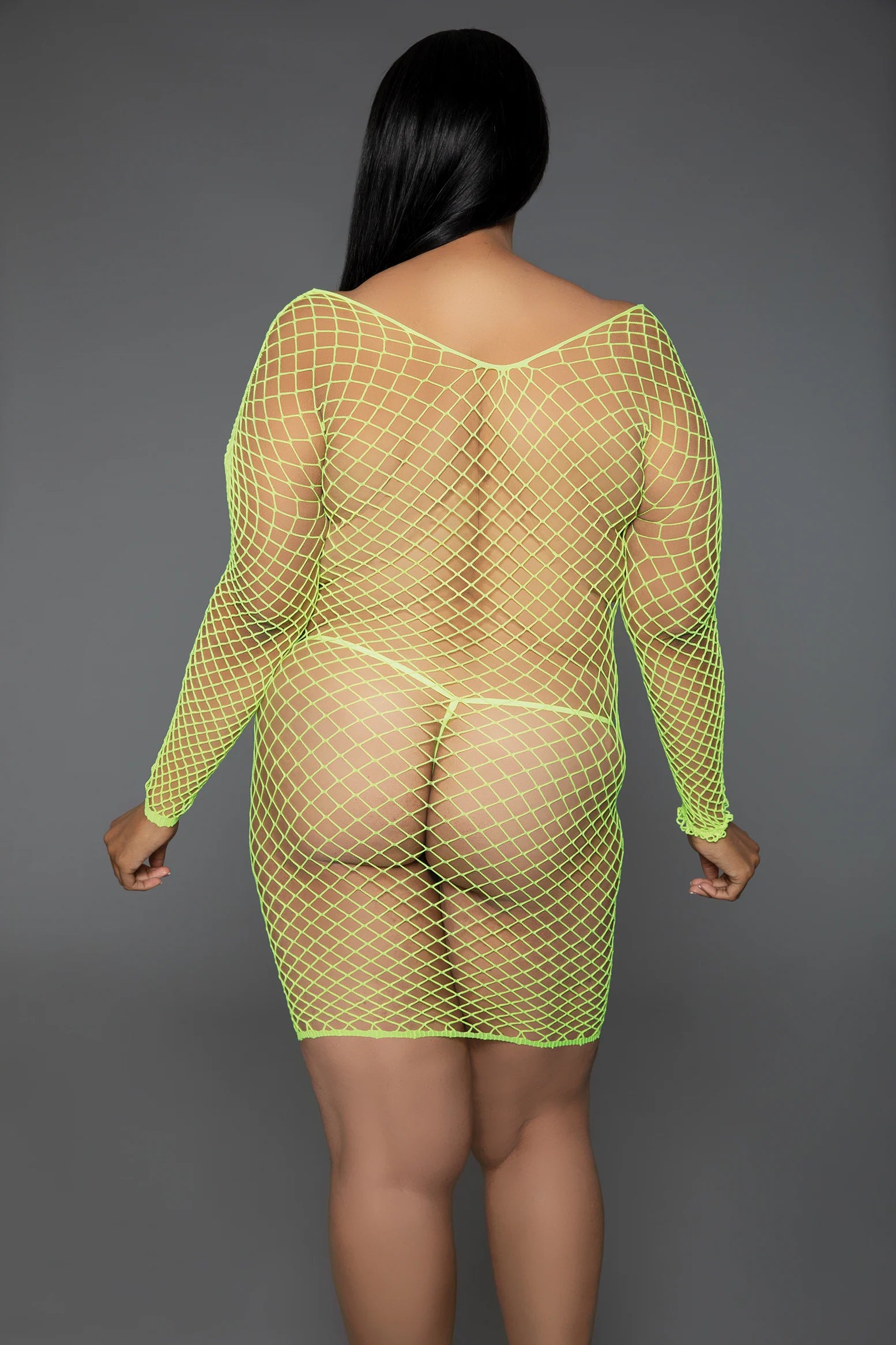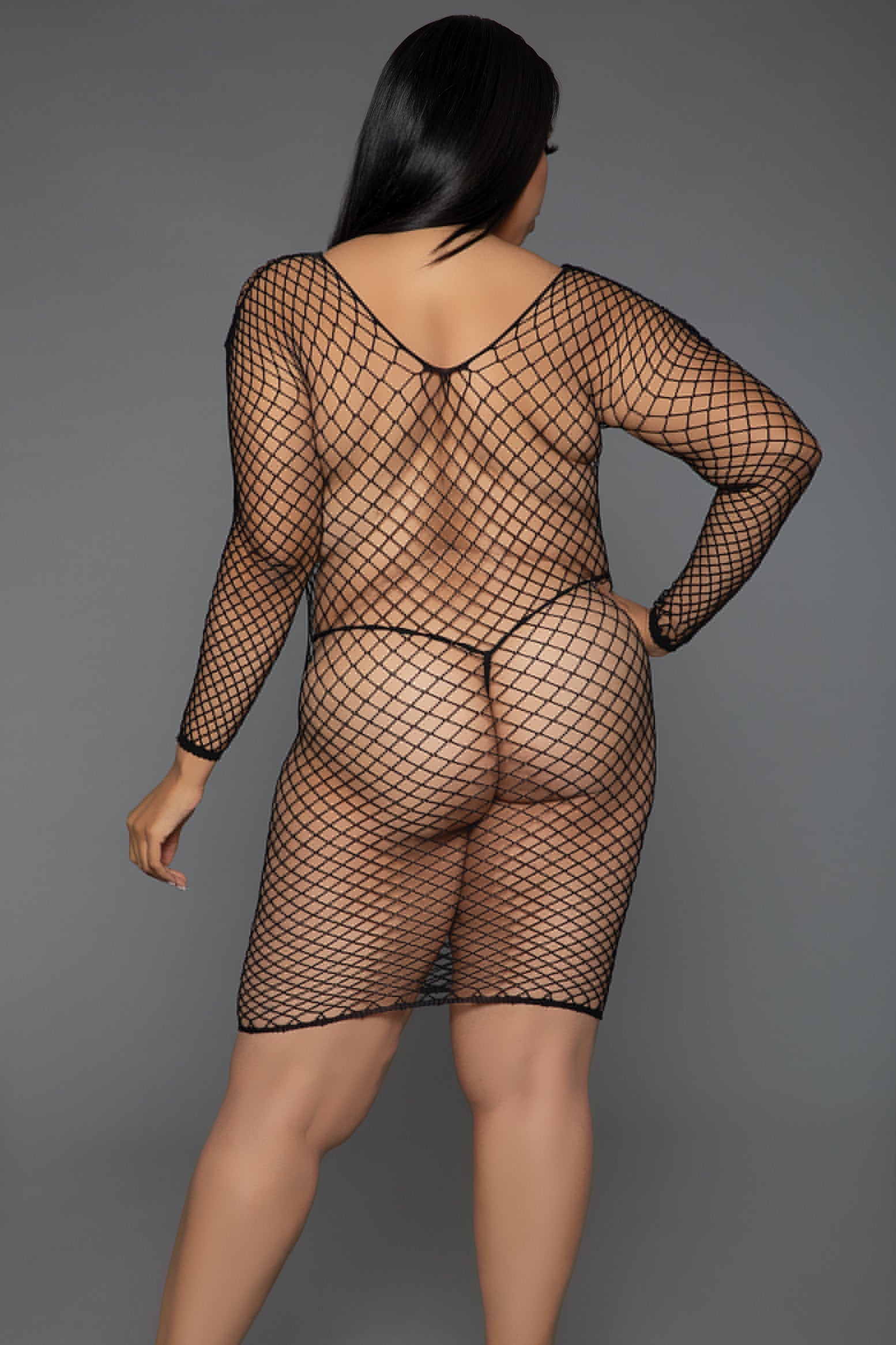 Release your wild side with a bodystocking dress that combines bold fish net textures and a classic bodycon silhouette to create a standout piece. This dress captures a sense of edgy allure while accentuating the body's curves, thanks to its form-fitting design and striking fishnet pattern.