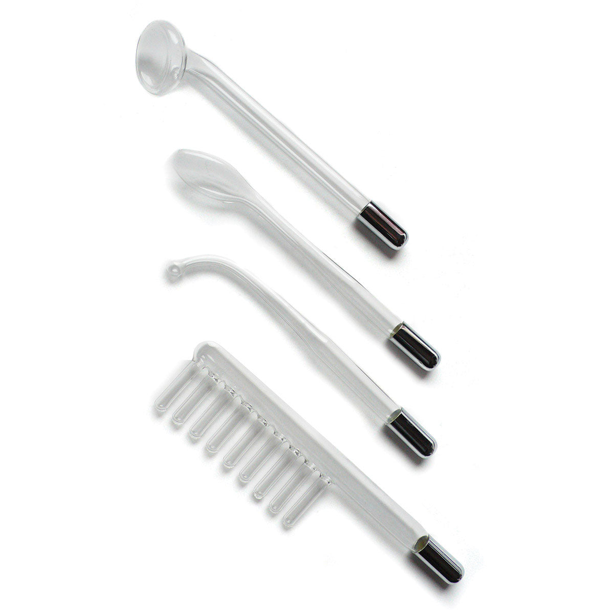 - Complete with four different glass attachments (Electrode Comb, Mushroom Tube, 90 Probe, Tongue Tube) each offers a different sensation and thrill to experiment with. A booklet of fun ideas is also included.