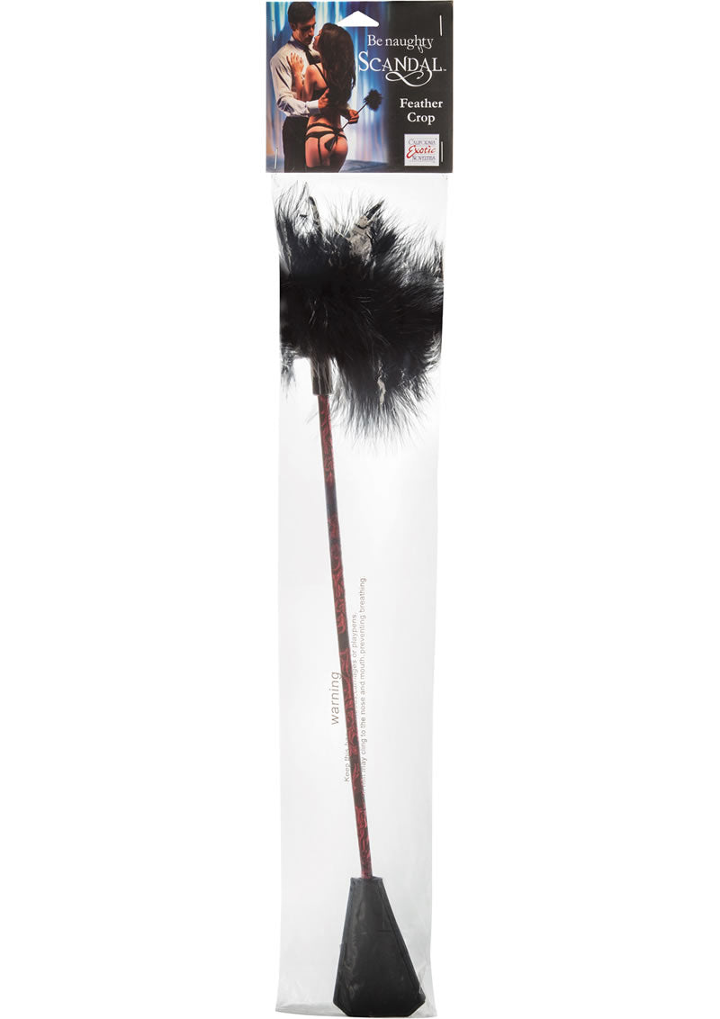 - Hand-stitched, dual ended crop and tickler - Sturdy crop with designer accents on one end, tickling feather on the other end - Polyester (Fabric) Marabou (feathers) Phthalate-Free PVC (crop) Size 21/53.25cm