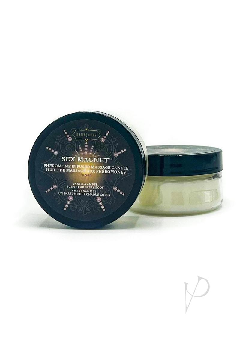 Pheromone infused massage candle made from organic coconut oil and shea butter. Set the mood for desire with the warm, amber vanilla scent. Light and let a warm pool of oil melt before pouring on or simply use as a body balm. Paraffin free. TSA approved travel size. Proudly made in the USA.