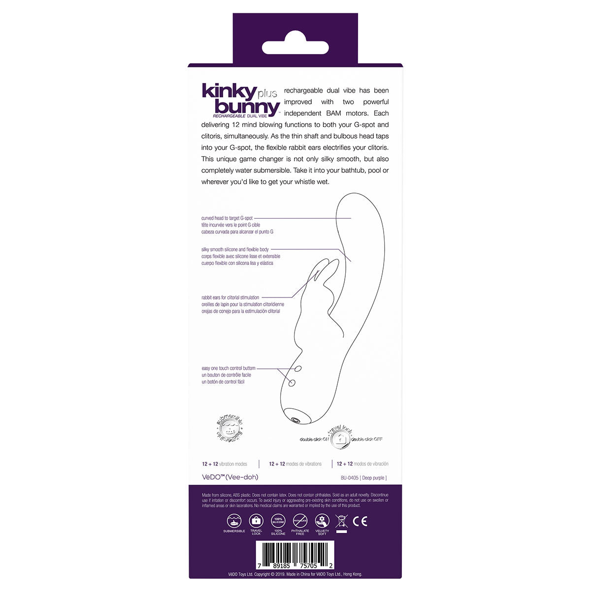 KINKY BUNNY plus rechargeable dual motor vibrator delivers mind blowing pleasure to both the G-spot and clitoris simultaneously. While the thin shaft and bulbous head taps into your G-spot, the ribbed tickler and flexible tip electrifies your clitoris. The unique shape of this game changer, boasts 10 powerful functions.